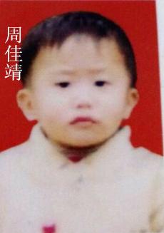 其他资料:失踪经过: 失踪当天,在二楼的楼道里妈妈急着去一楼的卫生间,妈妈就让佳靖扶着楼梯扶手慢慢下来,妈妈自己先下一楼去上厕所,妈妈上厕所大概用了一分多钟,等妈妈从卫生间出来孩子就不见了。